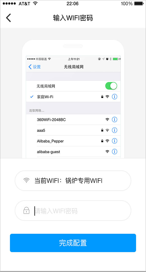 點(diǎn)擊“下一步”輸入WIFI密碼“完成配置”